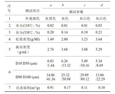 粒徑分析儀、粉體振實(shí)密度測(cè)試儀、全自動(dòng)水分灰分儀、比表面分析儀對(duì)銀粉的形貌、粒度分布、粉體密度、比表面積、水分灰分進(jìn)行表征[4,6]。將片狀銀粉用環(huán)氧樹脂體系配制成IC封裝導(dǎo)電銀膠,測(cè)試導(dǎo)電膠固化前的物性參數(shù)、固化片的特性、固化粘接特性及環(huán)境測(cè)試,并常溫下觀察是否分層,結(jié)果表明此片狀銀粉制得的導(dǎo)電銀膠均達(dá)到了應(yīng)用指標(biāo)要求。